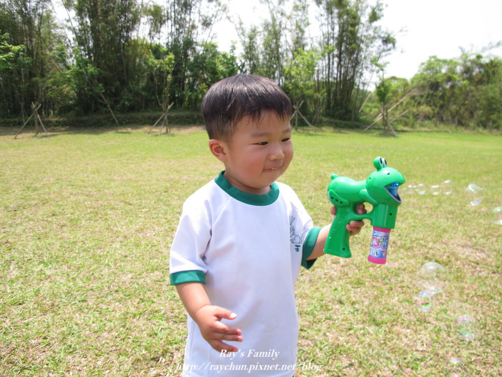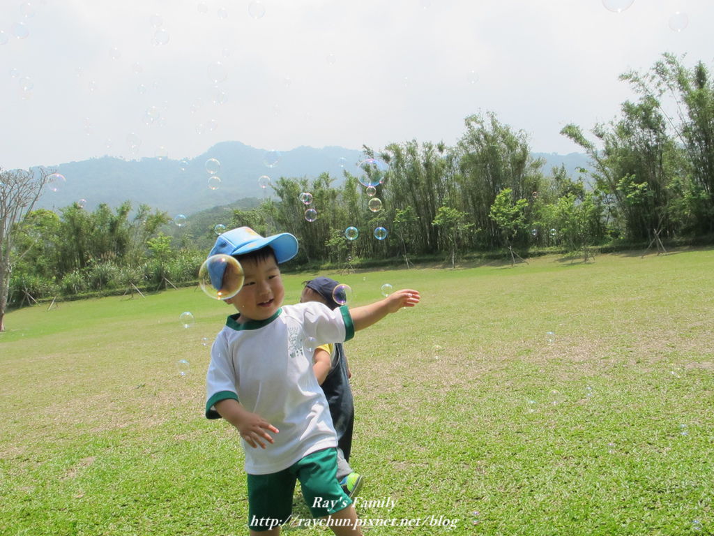 在大草皮上 一支泡泡機 就可以看到他們開心滿足的笑容 o
