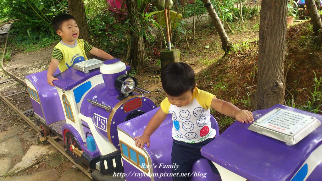 裡面的小火車 本來不打算給他們坐的 但後來發現裡面沒有太大的地方可以給他們跑跑 就坐一圈吧!