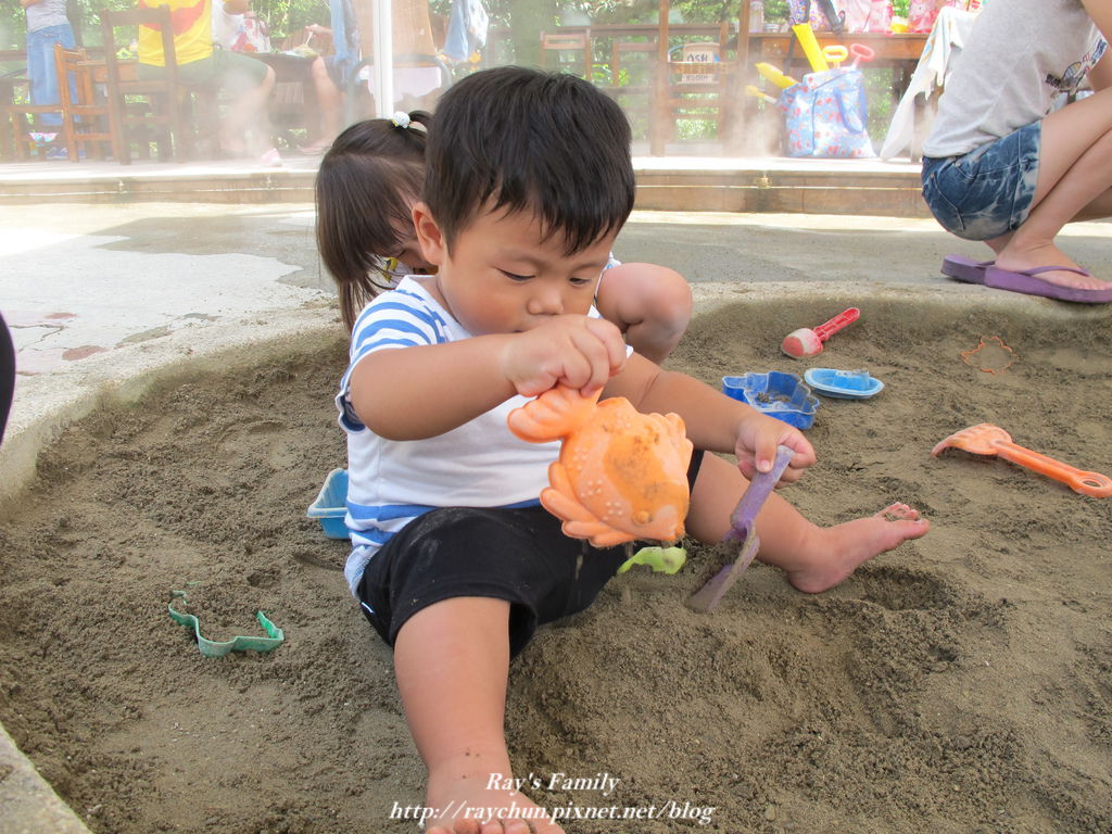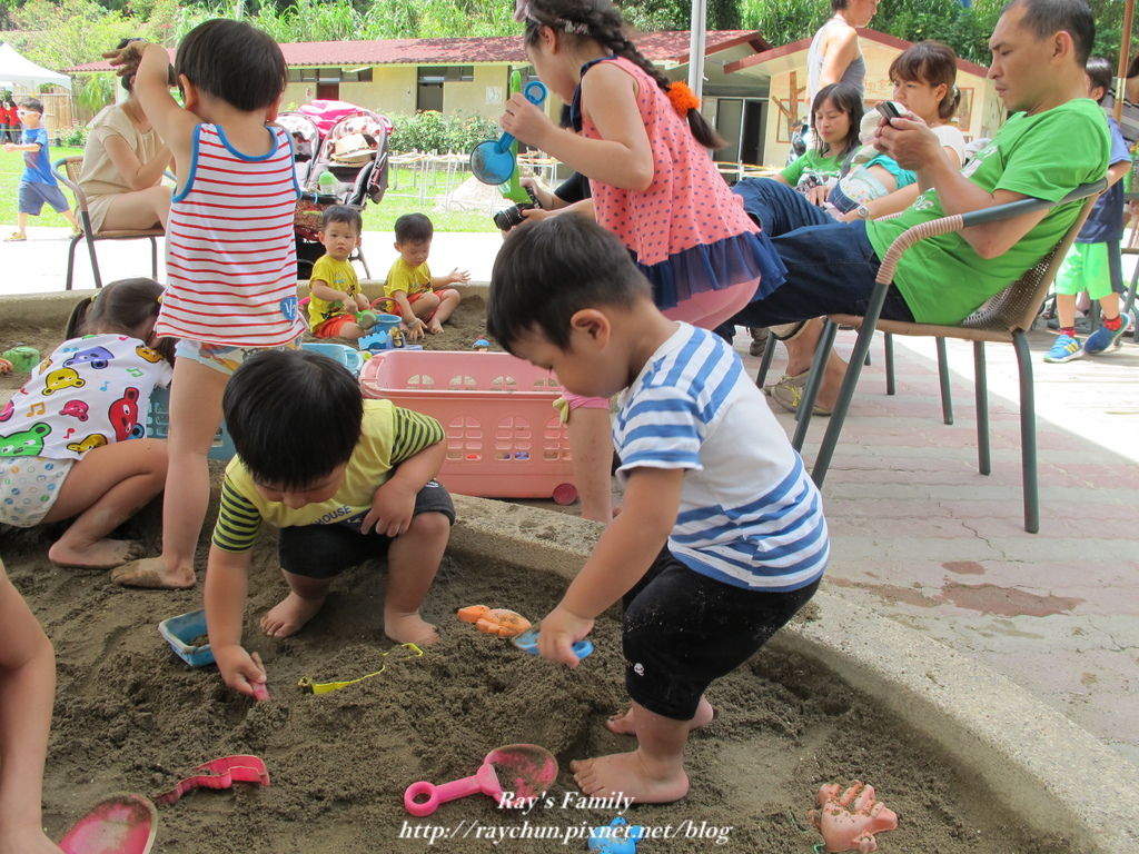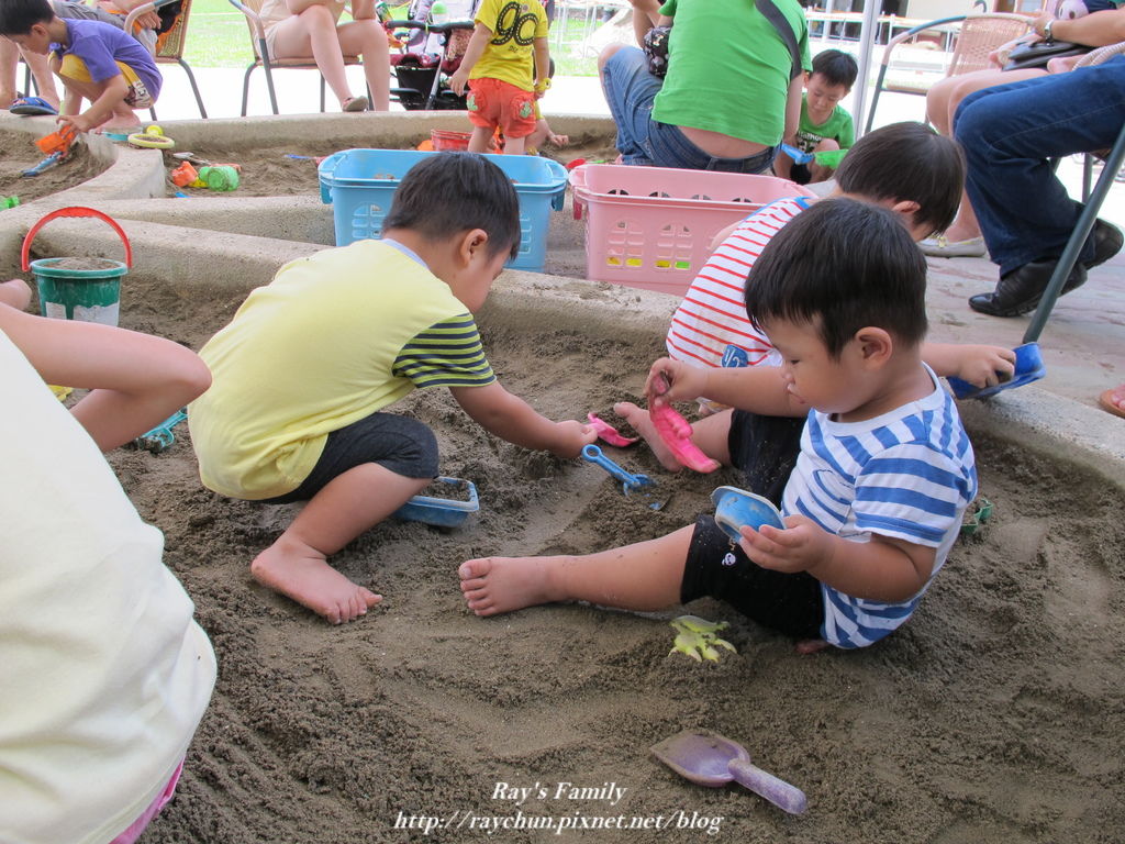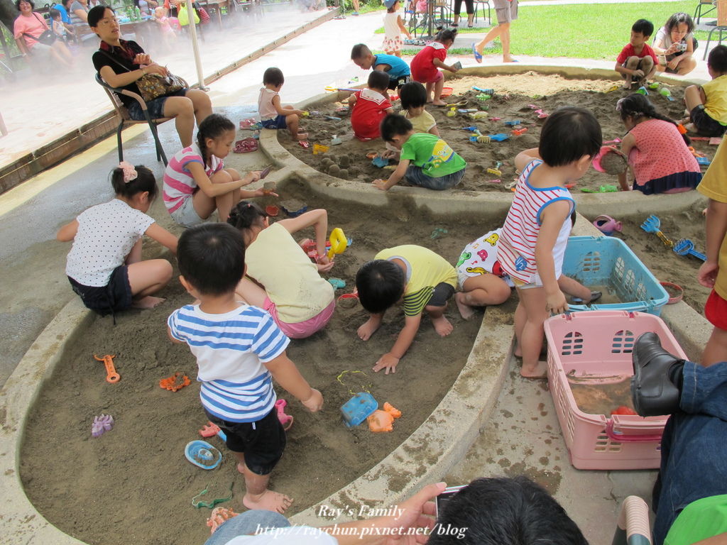 本來要讓他們先玩砂再去玩水的...但..小小一個戲水池~~人太多了!