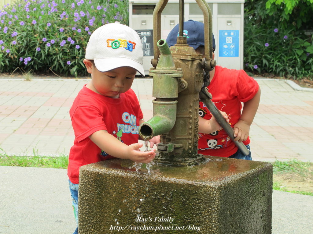倆兄弟看到壓水的水井,好開心~差點玩起水來了!!